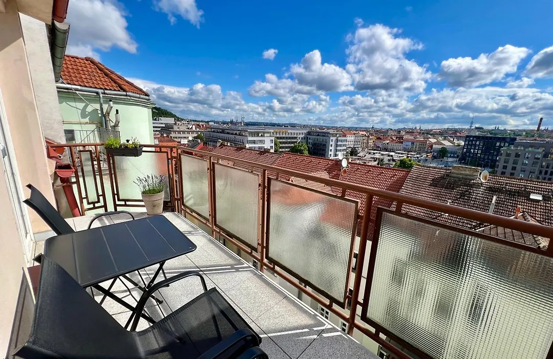 Az 1 szobás Rooftop Prague View Apartment rendelkezik erkéllyel és ülősarokkal, továbbá olyan kényelmekkel, mint a klímaberendezés. A további kényelem érdekében fürdőkád és külön WC elérhető az apartmanban. Ezen kívül hajszárítót és törölközőket is talál.